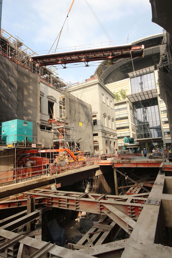 The first of the link bridges that connect City Hall and the former Supreme Court building is installed.
