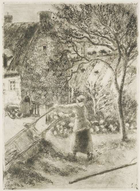 Beyond technical experimentation, Pissarro’s works reflect his social and political ideals, which resonate with his broader engagement with contemporary society and everyday life. Unique to the Gallery’s presentation, visitors will encounter Pissarro’s experimental print series Woman Emptying a Wheelbarrow (1880). Three prints from the series which share this motif will be displayed. He devoted careful attention to an ordinary subject, emphasising the labour of the working class. Each version of the print was created by augmenting the initial base plate and varying the inking for each impression, introducing different visual and textural effects. The layering of etching, drypoint, and aquatint allowed forms to evolve across states, blending precision with the painterly expressiveness of Impressionism.