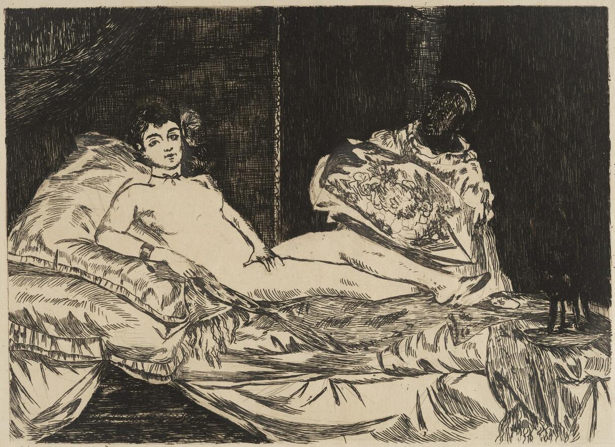 Meurent was not only an artist’s model, but also a dancer and a painter. Shown alongside three images of Meurent produced by Manet, her Self-Portrait (c. 1876), presents a mature, confident woman, rendered with refined attention to the textures of hair, skin, and fabric. This painting was likely the one she had accepted into the 1876 Paris Salon, the annual exhibition of the Académie des Beaux-Arts, the same year that Manet’s own submissions were rejected. Displayed alongside Manet’s Olympia (Large Plate) (1867), a work for which Meurent also modelled and for which the painted version caused a sensation at the 1865 Salon as a scandalous depiction of a nude prostitute, this pairing underscores Meurent’s dual identity as both model and accomplished artist. It also highlights the evolving roles of women in society and the arts, reflecting their increased agency and visibility. Through these works, visitors are invited to consider not only the individual subjects but also the broader social and cultural transformations that shaped these encounters.