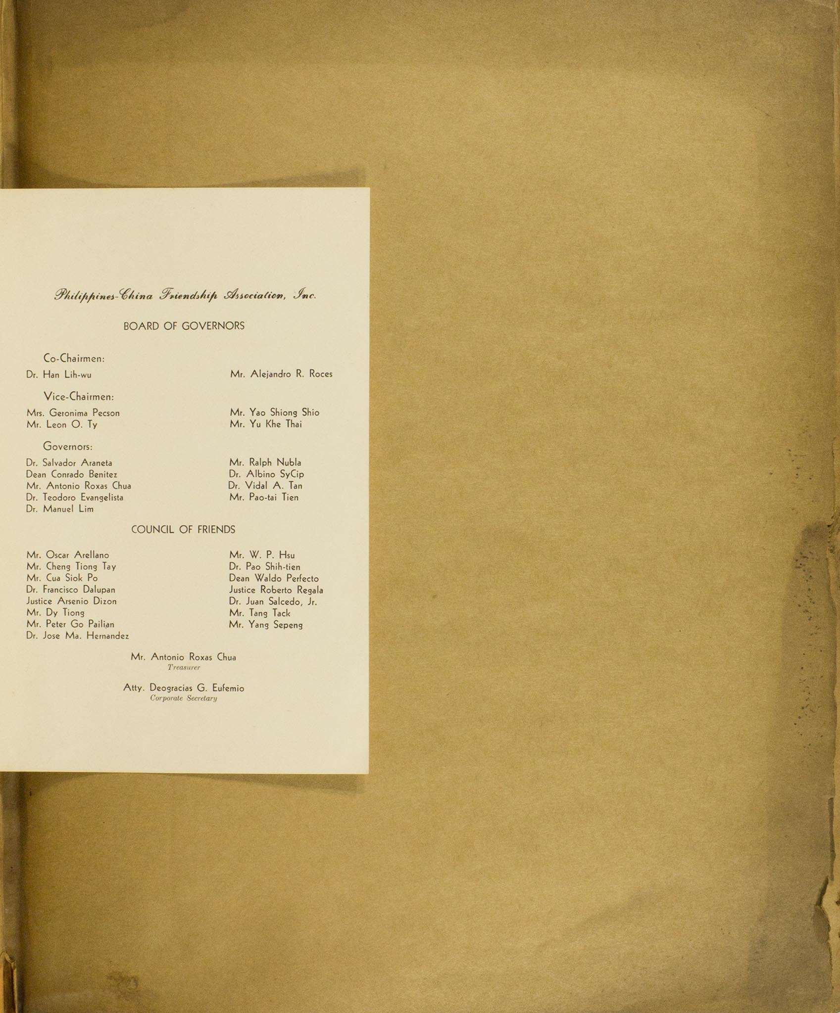 An Invitation to The Philippines-China Night with a program outline and its contributors.