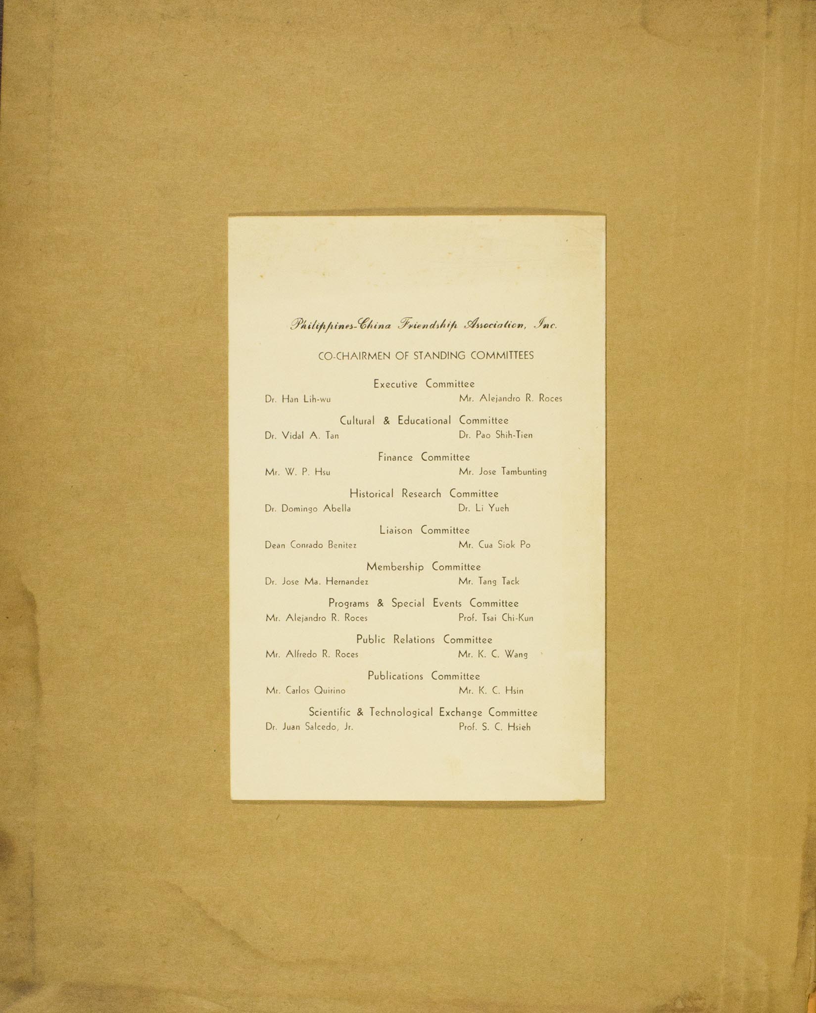 An Invitation to The Philippines-China Night with a program outline and its contributors.