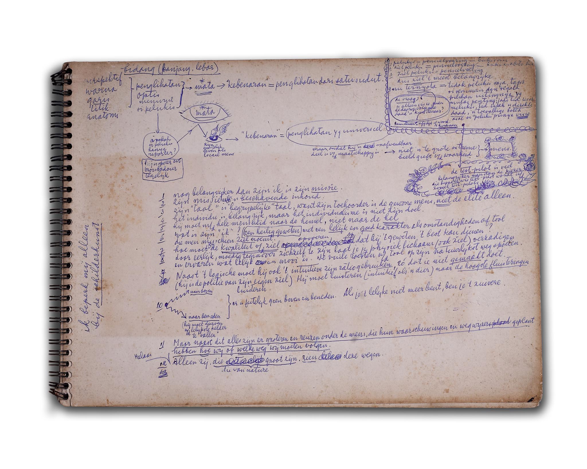 A page of Sudjojono's sketch depicting scribbles and handwriting notes on art theories