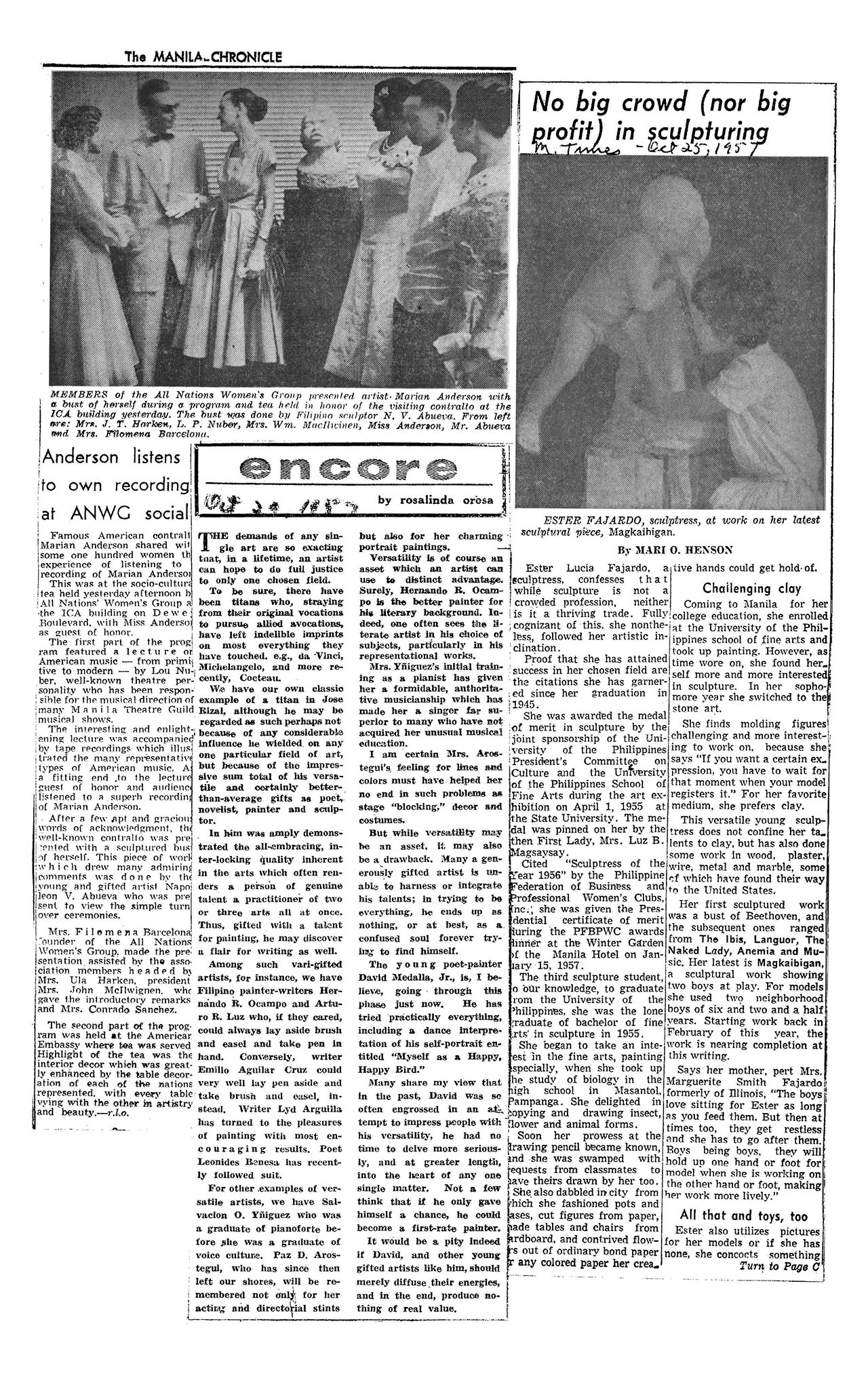 'No Big Crowd (Nor Big Profit) in Sculpting' by Mari O. Henson, Manila Times