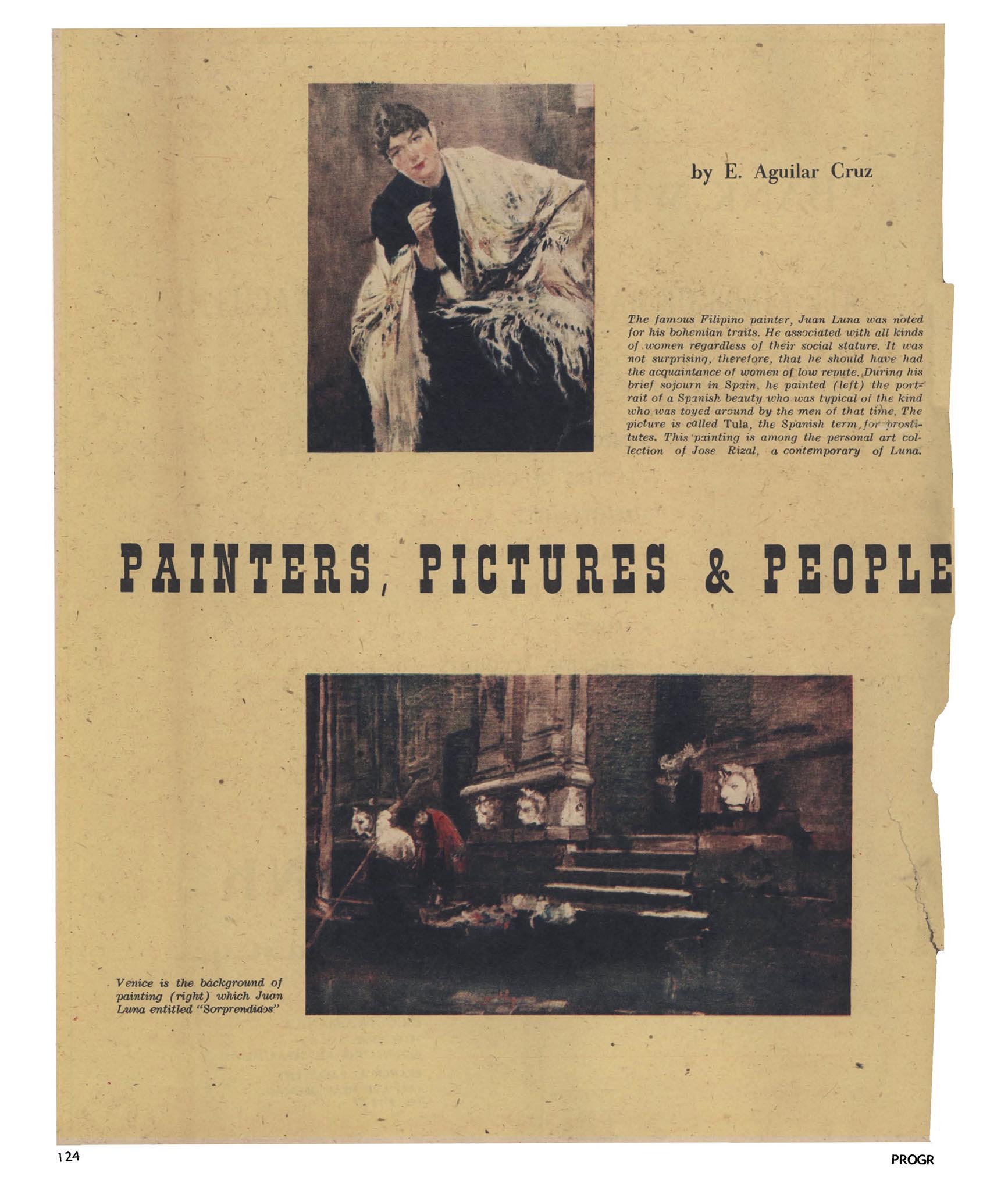 'Painters, Pictures & People' by E. Aguilar Cruz, Progress; "Filipino art is an offshoot of western art, and the Filipino artist of today, like of the west, is isolated from his public"