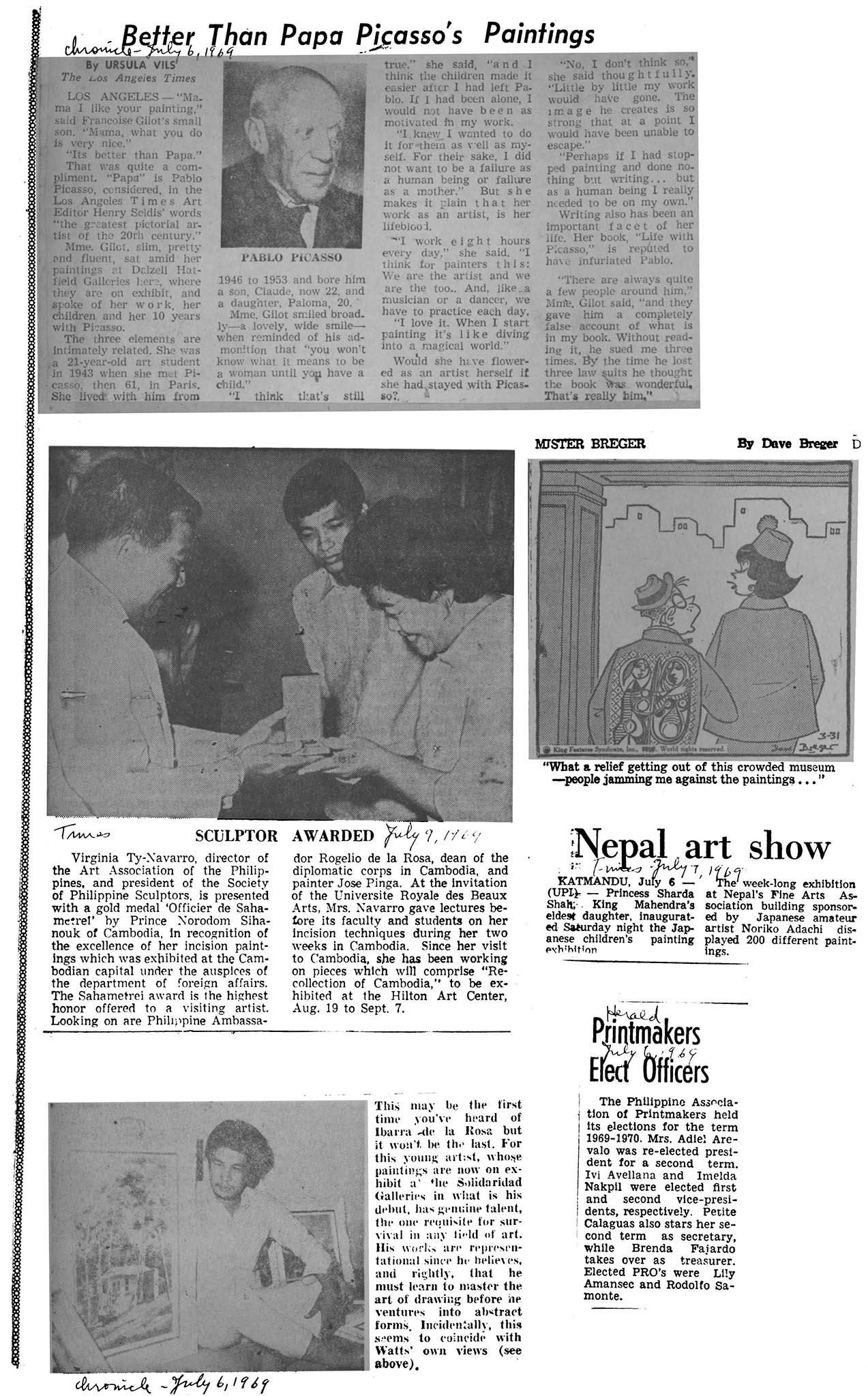 Better than Papa Picasso's Painting's; SCULPTOR AWARDED; Nepal Art show; [Photograph of Ibarra de la Rosa]; Printmakers elect Officers