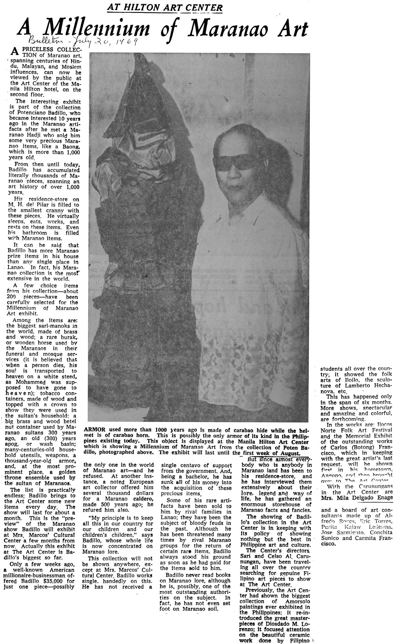 The Maranao art pieces belong to Potenciano Badillo's personal collection; aqcuired independently and without any support from the government.