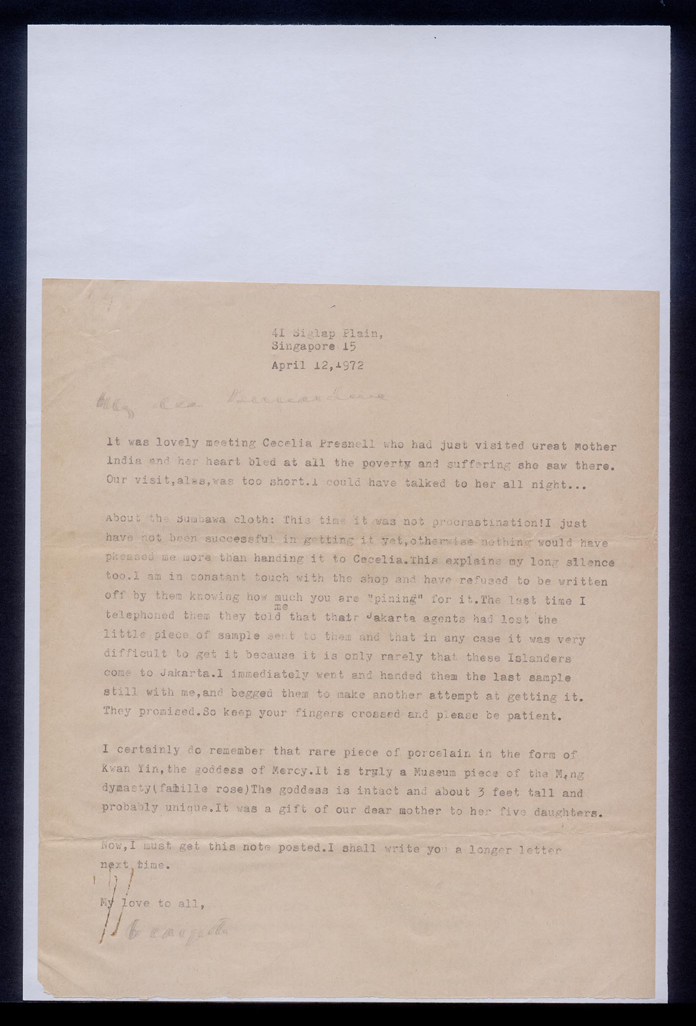 Letter from Georgette Chen to Bernadine Szold-Fritz, 12 April 1972 (Page 1 of 2)