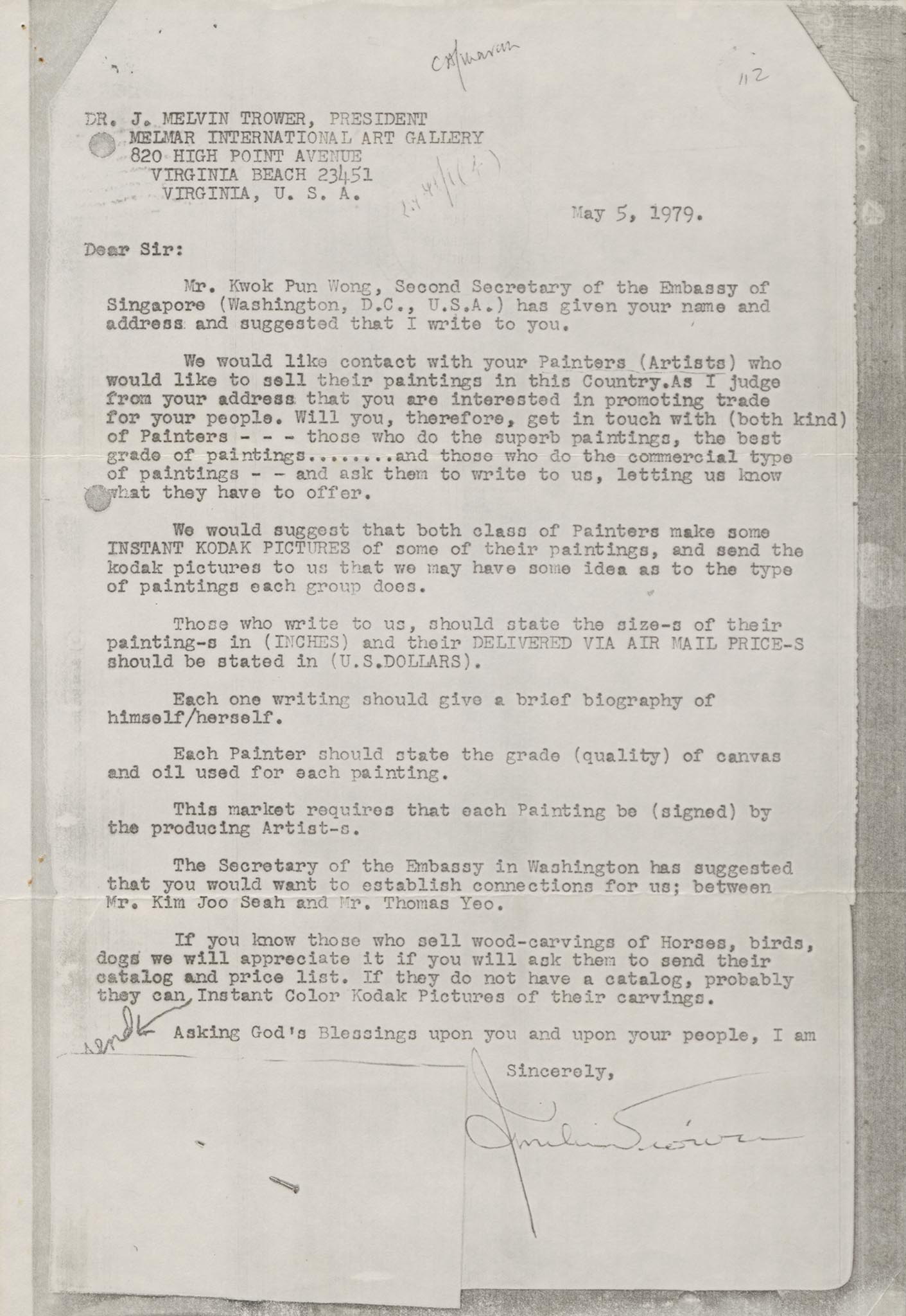 Letter to Dr. J. Melvin Trower, 5 May 1979