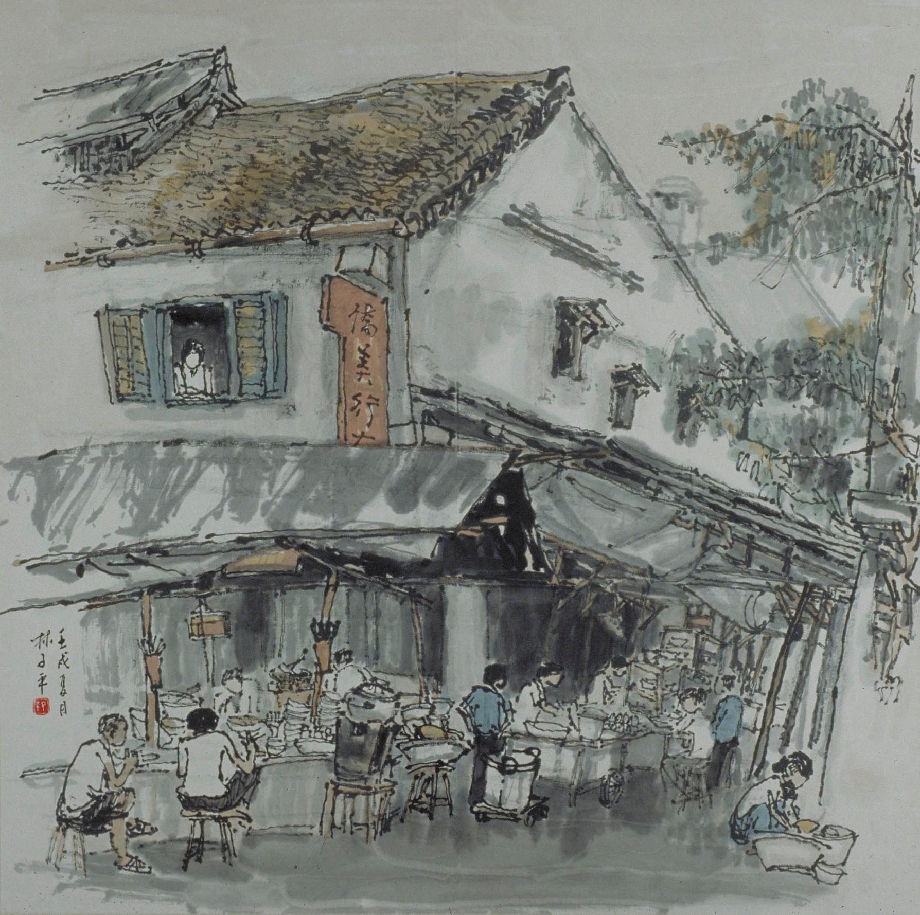 Ink and colour on paper